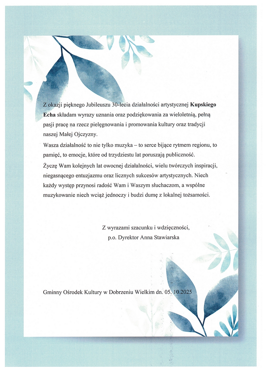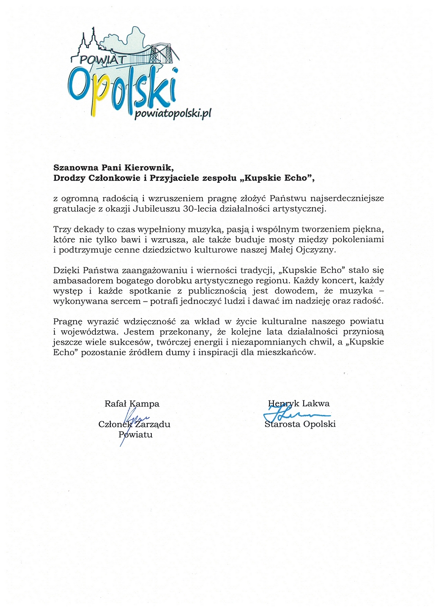 Adresy gratulacyjne z okazji Jubileuszu 30-lecia