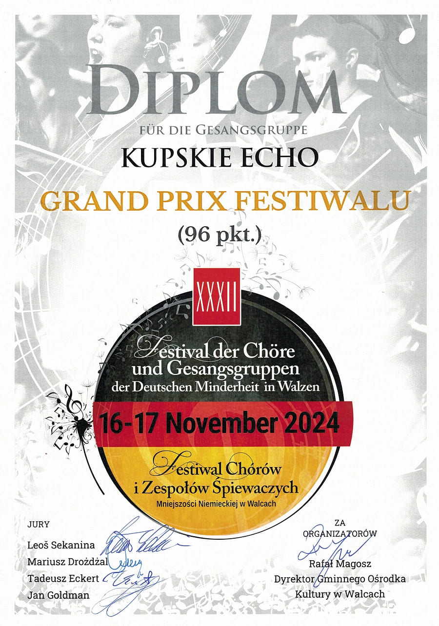 GRAND PRIX dla Kupskiego Echa w XXXII Festiwalu Chórów i Zespołów Mniejszości Niemieckiej - Walce (2024)